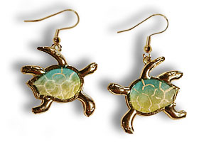 Delicate earrings honoring the majestic sea turtle. Includes storage box. See matching brooch.