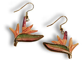 A pair of miniature tropical Birds of Paradise flowers! Includes storage box. See matching brooch.